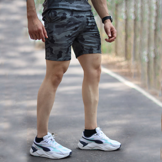 2-in-1 Compression Shorts with phone pocket: Military Camo - sale
