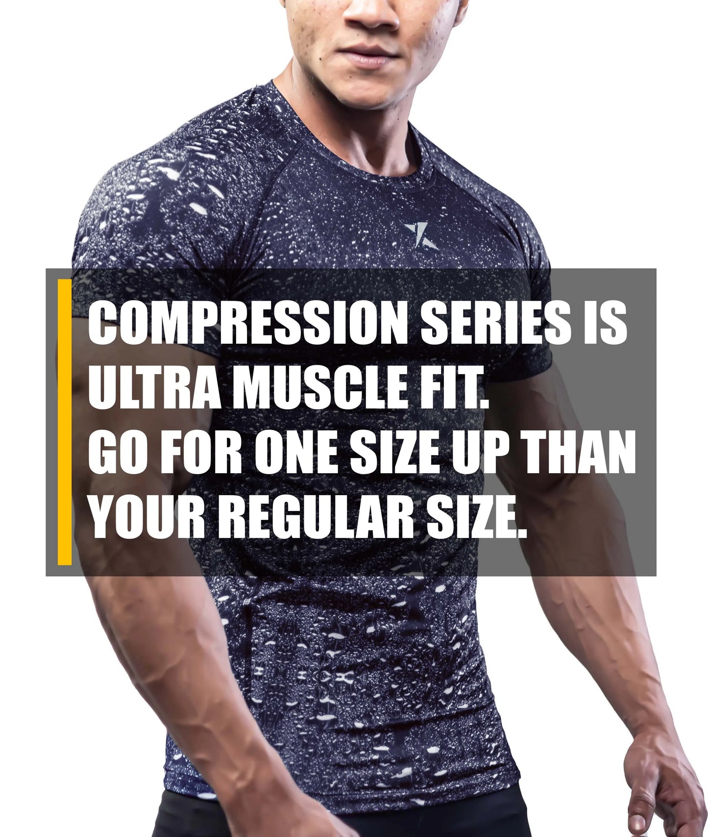OUR COMPRESSION SERIES ARE ULTRA MUSCLE FIT. GO ONE SIZE UP THAN YOUR REGULAR SIZE. For example, if you wear Large in regular tees, select Extra Large in compression range.