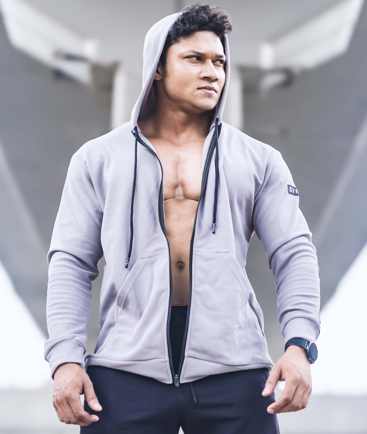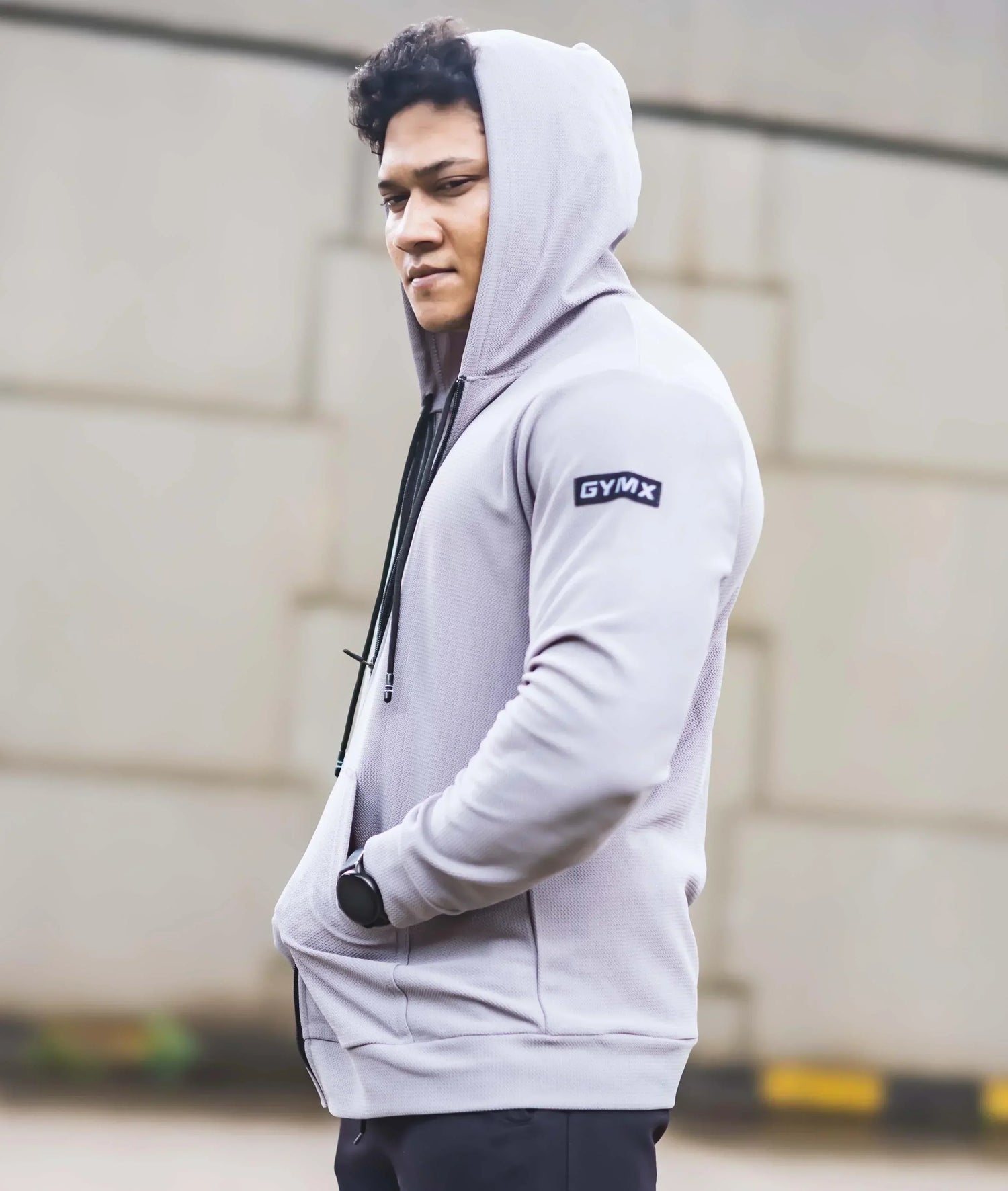 Introducing the Vogue GymX Hoodie- the perfect blend of style and functionality. Made with thick cotton fabric, this hoodie is built to keep you warm during cold weather. Its comfortable fit and knitted effect make it versatile for both gym and outdoor wear. Upgrade your wardrobe with this exclusive beige hoodie.